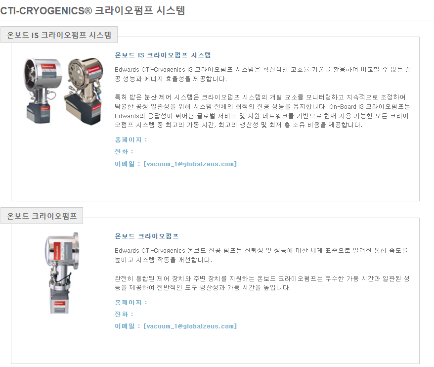 반도체 제조공정 및 일반 산업체 박막 공정에 주로 사용되는 Cryo Pump를 취급하며 세계시장 1위의 점유율을 가지고 있습니다.