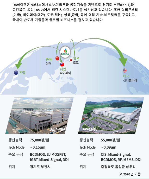 우리나라의 생산 시설은 Fab(부천), Fab(상우) 두 곳에 생산 시설이 있고, 생산 능력은 월 13만장 정도 된다고 합니다.