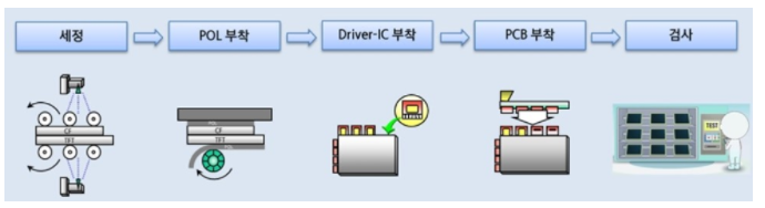 디스플레이 본딩 공정 중 부품의 부착이 필요한 장비에 광학계 모듈 형태로 개별적으로 포함되며, 각 과정에서 카메라를 통해 부품과 패널이 정확한 위치에 정렬되도록 검사하여 정상적인 본딩 공정이 이루어 질 수있도록 합니다.